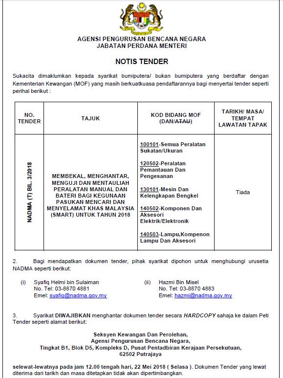 Nadma Malaysia On Twitter Tawaran Tender Nadma T Bil 3 2018 Https T Co Xc66gdojpn Twitter